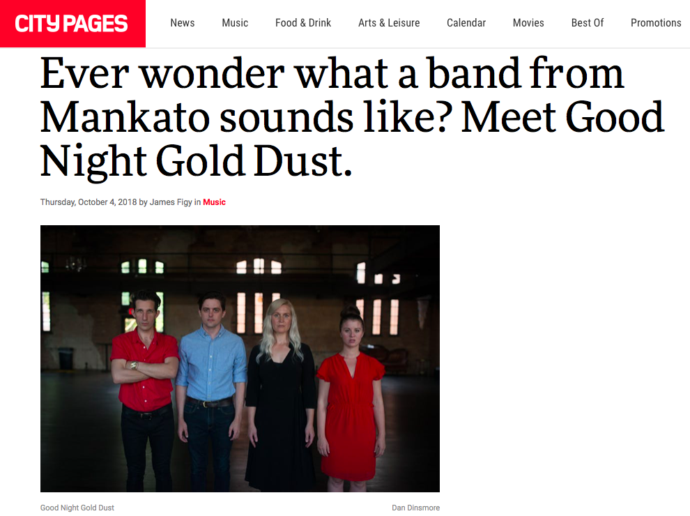 Any Minnesota band based outside the Twin Cities metro faces obvious challenges. But with a recently released EP and a show this Friday at Icehouse, Good Night Gold Dust is focusing on the benefits.